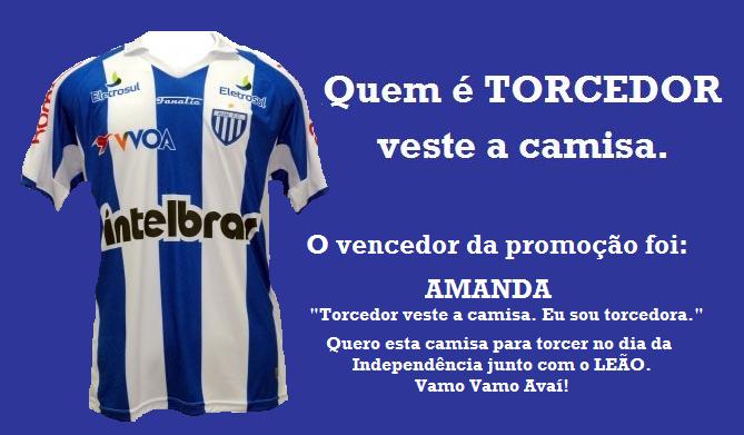 "Torcedor veste a camisa. Eu sou TORCEDORA. Quero esta camisa para torcer no Dia da Independencia junto com o Leão. Vamo, Vamo Avaí."