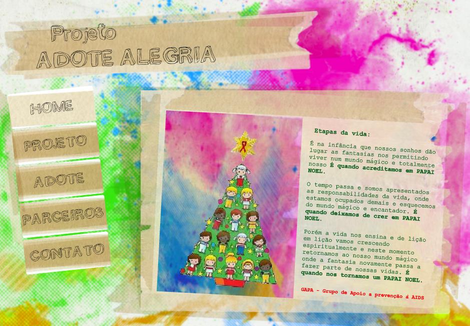 O GAPA - Grupo de Apoio Prevenção à AIDS está lançando o Projeto "Adote Alegria" que tem por objetivo arrecadar brinquedos para crianças cadastradas e que são filhos ou familiares de portadores do vírus. A ação consiste em apadrinhar uma criança doando um presente além de tornar de conhecimento da comunidade as ações da instituição. Para conhecer melhor o projeto visite o site e participe, as crianças agradecem.